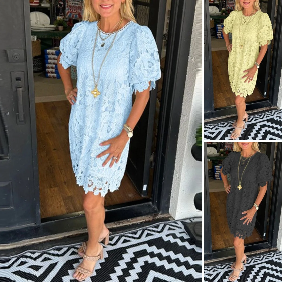 WOMEN'S FLORAL LACE PUFF SLEEVE DRESS