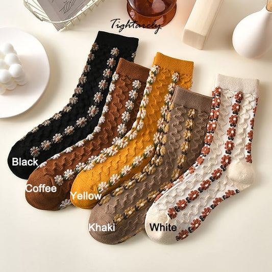 Black Friday Sale 50%OFF-5 paires de chaussettes en coton à fleurs en relief pour femmes